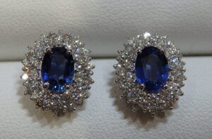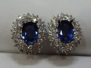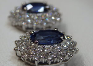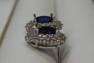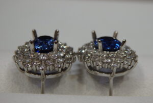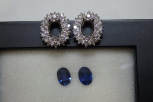Ptピアス枠にサファイアを留めました。