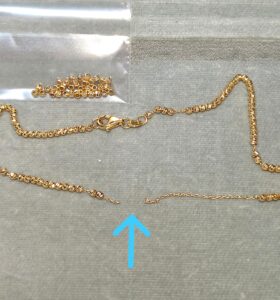 外れたミラーボールをチェーンに通してからロウ付けします。