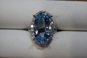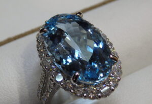 Ptアクアマリンリングの石留を行いました。
